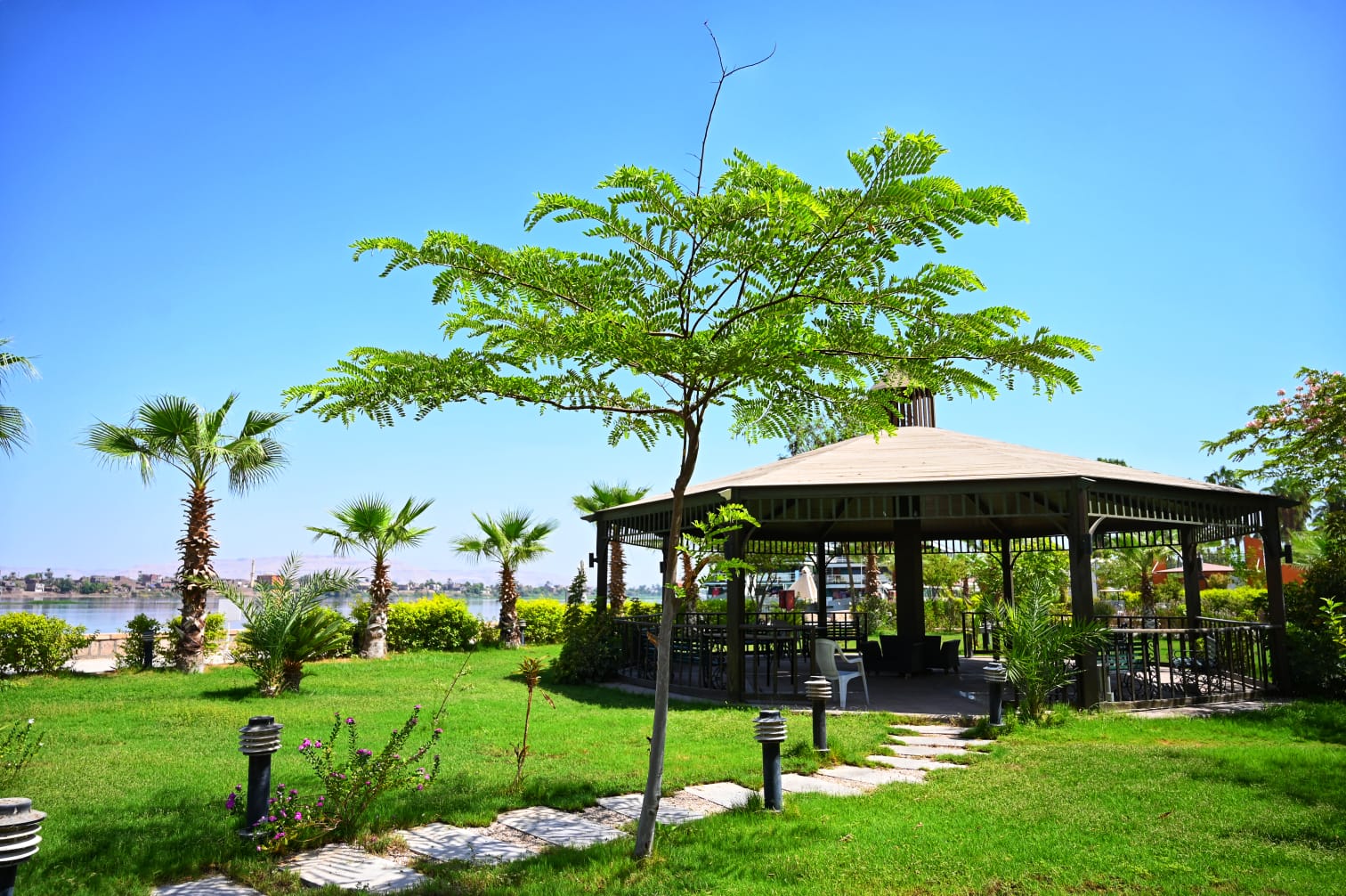 Step into a space where tradition meets innovation. With wooden pergolas offering shaded spots to relax, advanced security and surveillance systems ensuring peace of mind, and a fully integrated civil protection, fire safety, and sanitation system—Amarco sets the gold standard for Nile-side hospitality.
